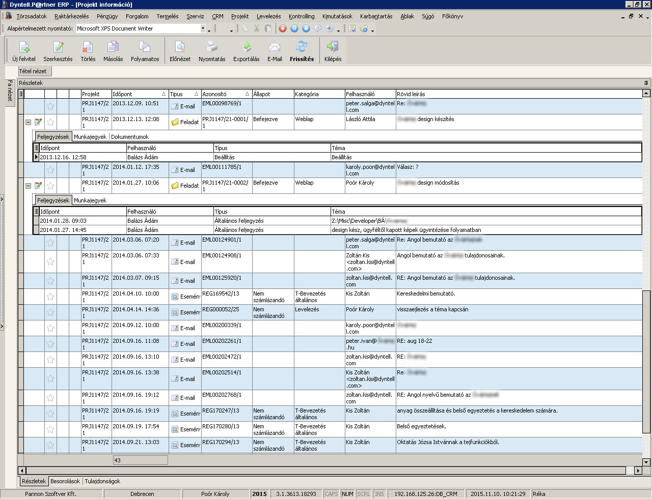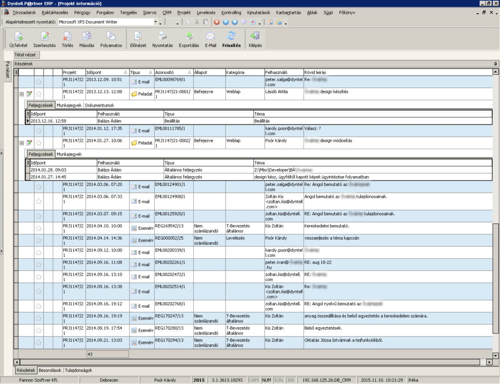 Az email- és dokumentumkezelés két nagy problémája a kereshetőség és rendszerezés. Károly elmondta, hogy a fehérgallérosok munkaidejük akár 20-35%-át is a levelezéssel tölthetik. Ennek az időnek 10-12%-a csak az, hogy keresünk egy korábbi levelet, vagy épp azt a kollegánkat hívjuk, akiről tudni véljük, hogy tudja, hol van a levelezés az adott projektről. Ez egy 100-200 fős cég életében komoly adminisztrációs időveszteség, és akkor még a dokumentum- és eseménykezelést nem vettük számításba. A megoldás lehet egy strukturált projektvezetés, lásd az alábbi ábrán: